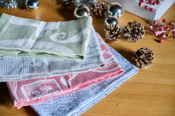 Holen Sie sich ein Stück Baukultur nach Hause! Zum 20-jährigen Jubiläum hat die Stiftung Ferien im Baudenkmal hochwertige Küchentücher produziert, die in der Schweiz hergestellt werden. Die Stoffe sind von vier Baudenkmälern der Stiftung inspiriert.